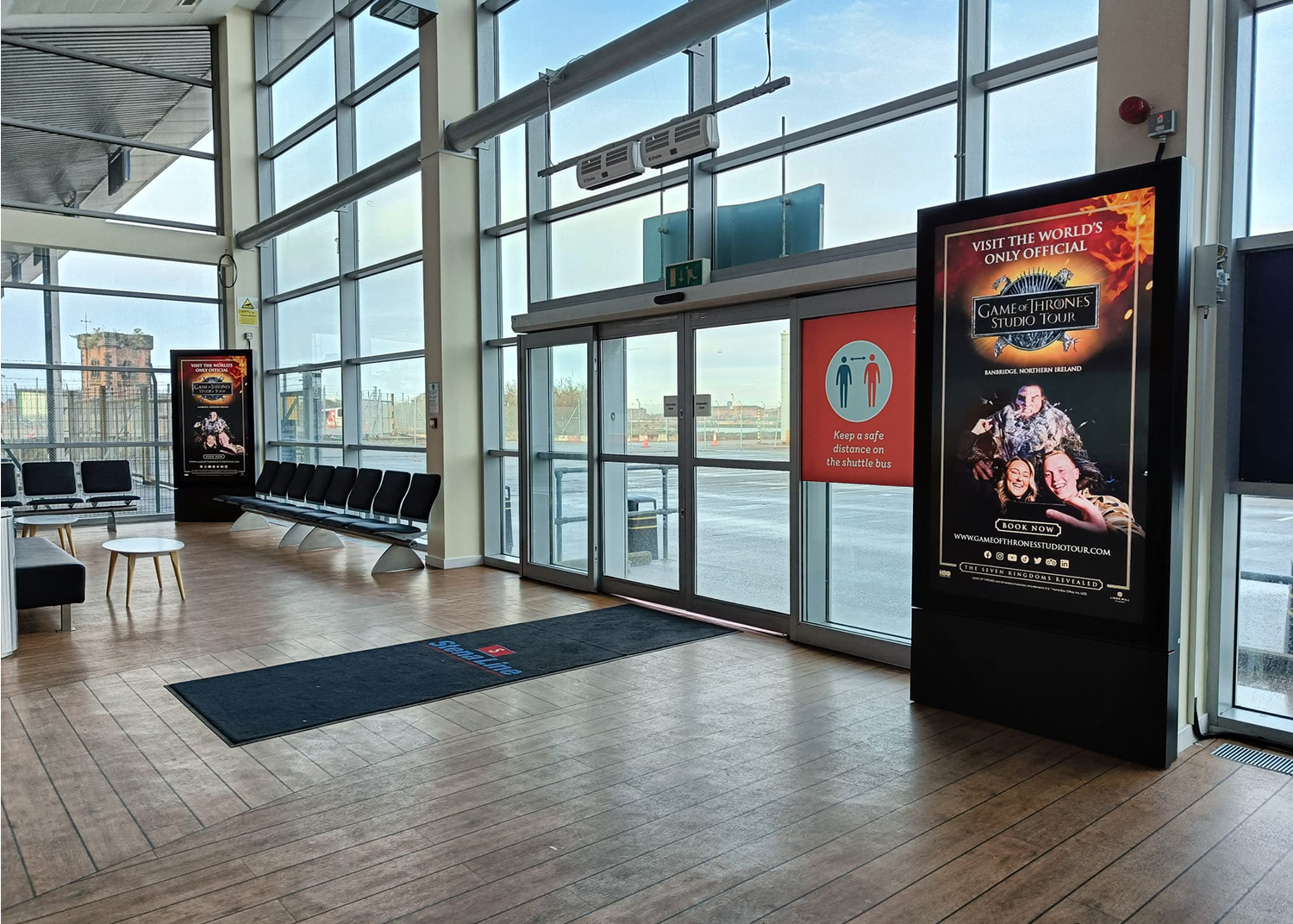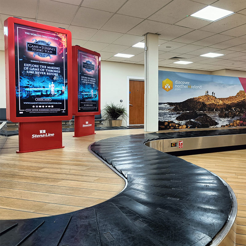 Inside the terminal, we offer a number of D6 digital screens located in high-traffic areas such as the baggage carousel and foyer. These 1080px x 1920px portrait-format screens are positioned where passengers naturally pause and wait, making them ideal for delivering targeted, attention-grabbing messages. Whether you're promoting a local product, regional service, or national campaign, these screens give you the flexibility to run dynamic, rotating content that can be updated remotely.